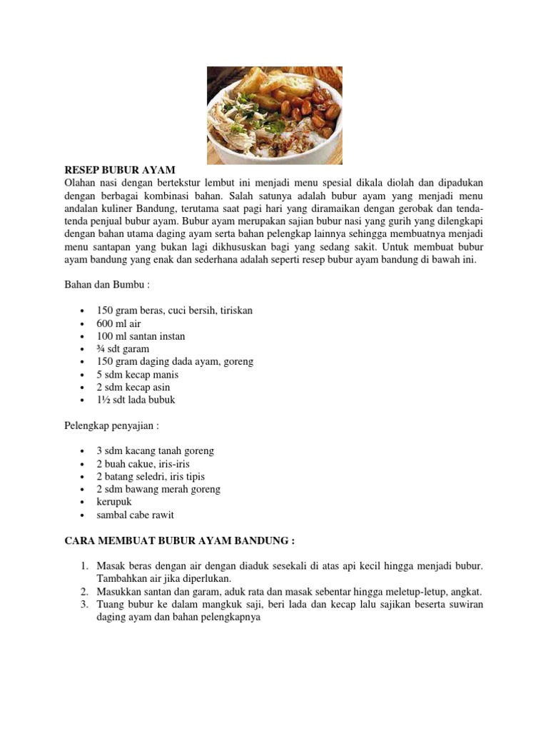 Cara Membuat Bubur Ayam Dalam Bahasa Inggris Info Umum from img.inews.co.id Very easy, needs a rice cooker malay version porridge. Bubur ayam pak bam, semarang, indonesia. Resep bubur ayam language:en : Pada masa penjajahan di indonesia, banyak warga mengalami gagal panen dan tidak mampu membeli beras dengan jumlah yang cukup maka dari itu warga memasak beras yang mereka miliki dengan banyak air dengan tujuan untuk. Bubur ayam jakarta is now very easy to find, morning, afternoon or even night, there are always some who sell it. Resep bubur ayam'resep bubur jamur dried scallop rice porridge or conpoy congee recipe. 200 likes · 97 talking about this · 1 was here. Reviews review policy and info.